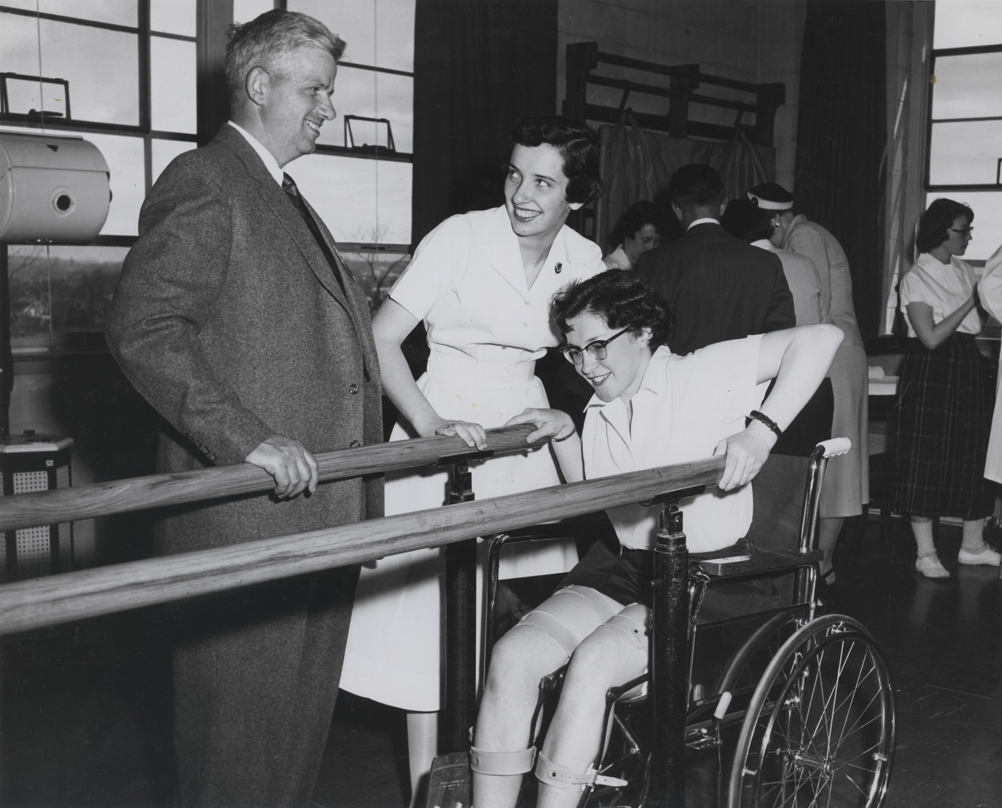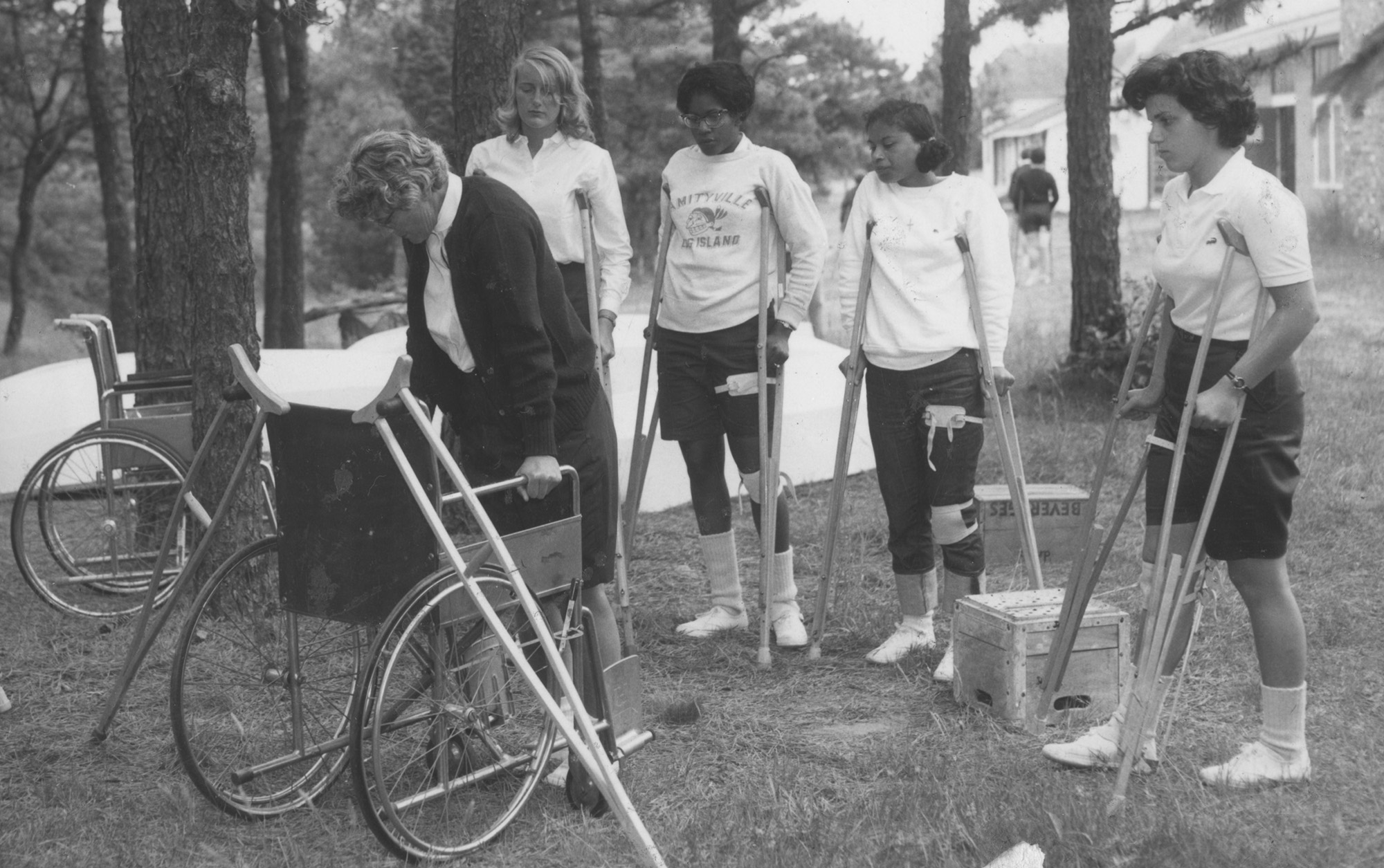 Soon after Bouvé-Boston relocated to the Tufts College campus, administrators allowed students to pursue either physical therapy or physical education as their course of study. Differentiated by curriculum, physios also developed their own customs and re-imagined traditions to fit their professional interests. At meetings of the physical therapy club, students discussed how to enrich departmental resources and recruit potential majors. Annual pinning ceremonies marked the transition from student to physical therapy aide. When preparing for camp, physios packed their braces, crutches, and wheelchairs for use in daily activities so as to prepare for work with disabled children in the future. Distinction on campus paralleled the growing independence for physical therapists within the medical field.